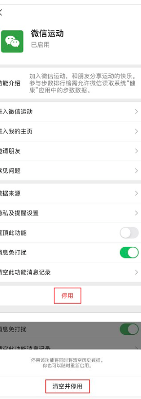 5、如果本身是开启的话,界面会显示停用,点击【停用】即可关闭微信运动;