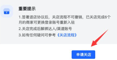 3、在其中可以查看关店注意事项,确认后点击“申请关店”
