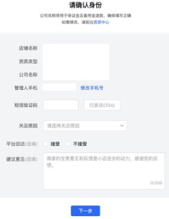 4、首先我们需要填写个人信息,确保与店主一致,填写完成点击“下一步”