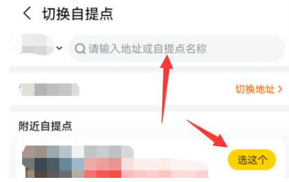 3、在其中就可以搜索自提点了,搜索到后点击“选这个”即可切换。