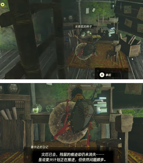 2、进去后这里是有一个小屋子,那么玩家是可以在这里找到塞尔达的日记,玩家们是可以从中知道新的英杰服位置是在哪。