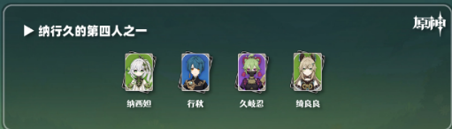 ①“纳行久”的第四人选择较为灵活,当选择搭配绮良良时,可以考虑久岐忍多堆叠元素精通以提高久岐忍触发的超绽放伤害。