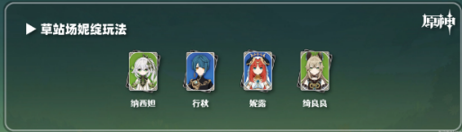 参考输出顺序:纳西妲EQ、妮露4E、行秋QEA、绮良良E、纳西妲站场普攻