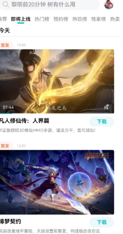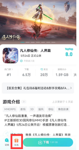 1、首先我们需要登录最新版本的【TAPTAP】,然后搜索找到【凡人修仙传:人界篇】,如下图结果,点击进入。