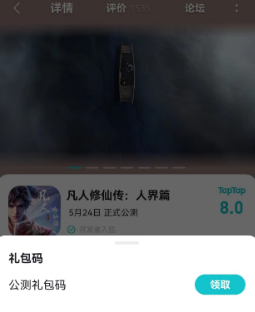 3、最后在公测礼包右侧点击领取按钮,就能获得相应的凡人修仙传人界篇礼包兑换码。