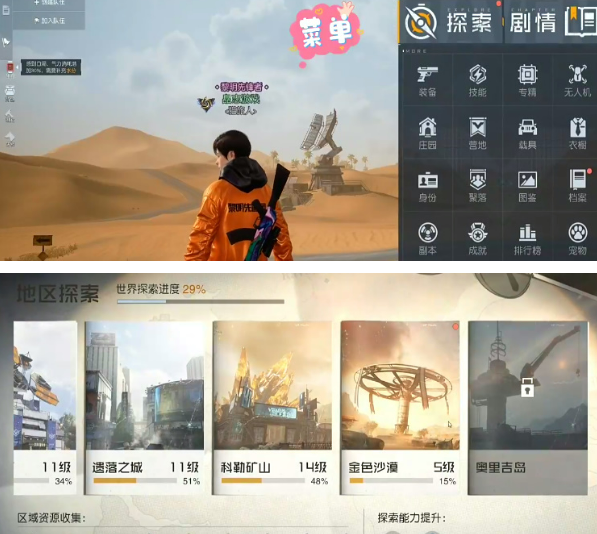 3、玩家通过收集沙漠地图的物资箱+悬垂物资、铁棘箱等获取探索经验;