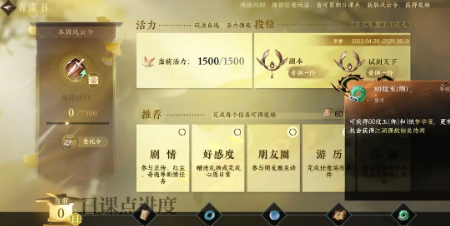 任务类型:剧情、游历、身份、副本、竞技、庄园、探索、混江湖、好感度、朋友圈