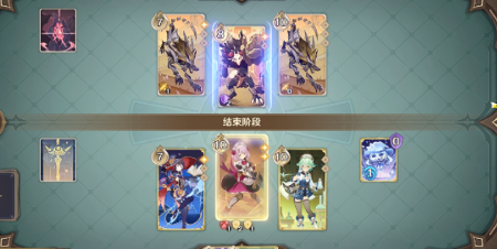 1、诺艾尔元素爆发然后诺艾尔普通攻击,切换莫娜,莫娜元素战技,宣布回合结束。