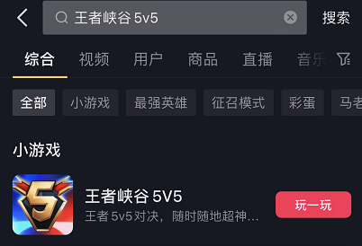 1、在抖音里面搜索【王者峡谷5v5】,即可看到小程序,进入即可体验;