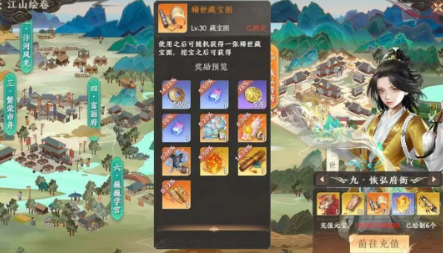 【稀世藏宝图】:可获得铜钱、宝石、金币、技能天书、神兽凤凰碎片等稀有奖励,有概率可以进入宝藏副本,可以邀请好友一同探索。