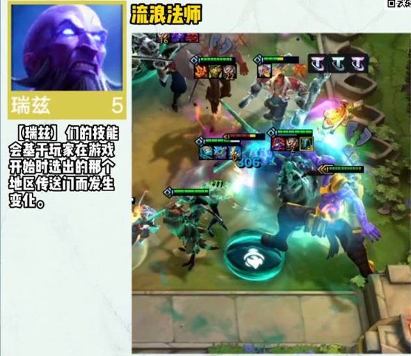 5:瑞兹,流浪法师,瑞兹们的技能会基于玩家在游戏开始时选出的那个地区传送门而发生变化;