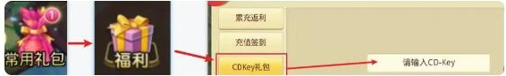 兑换方法:点击左上角的【常用礼包】按钮,然后按照下图方式操作即可兑换。支持复制粘贴,主要不要有粘贴到空格,不然会提示【输入激活码礼包格式有误】