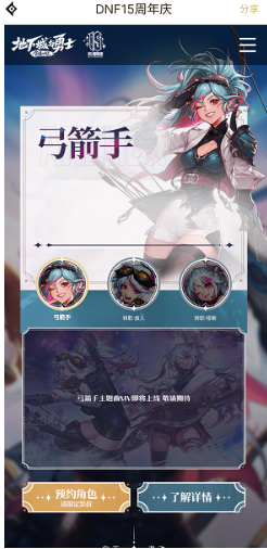 1、点击上方的地址就可以进入dnf官网,之后往下拉就会有弓箭手预售礼包的活动;