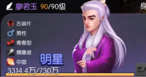 一技能限定古装片,触发之后有概率帮助自己增加各种属性。二技能限定约会场景,如果对手戏演员选择的是和廖君玉有羁绊的角色时,该技能会增加百分之三百的艺人属性。三技能限定廖君玉作为主角,触发后整个剧组和廖君玉自身都能够提升属性。