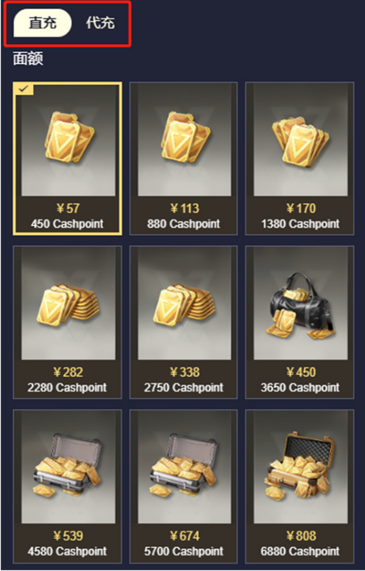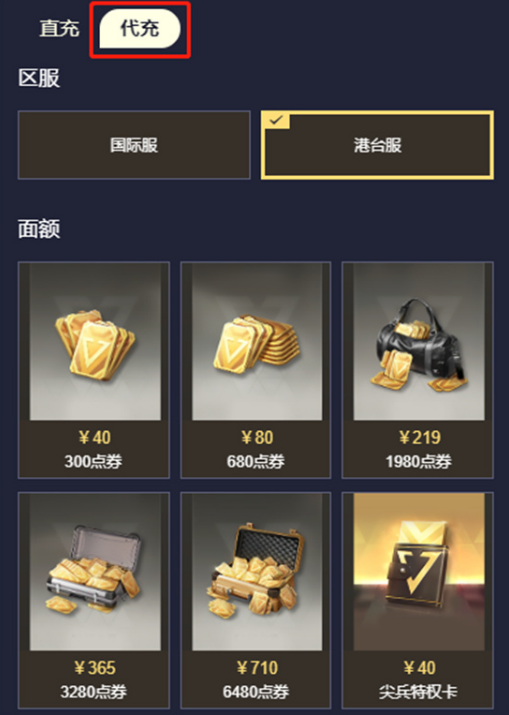 注:下图为超凡先锋直充价格,玩家可以与上一张图的代充价格进行对比,就会发现代充价格是低于直充的。