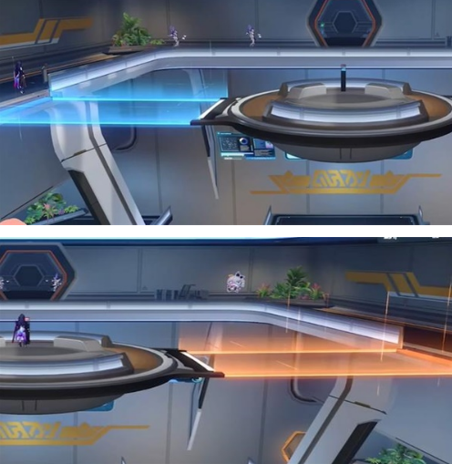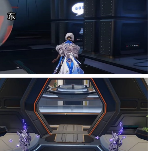 3、我们走出房间之后,就在此操作控制装置,变成蓝色光桥之后通过,在操作中间的控制装置,变成橙色光桥之后通过,就可以找到第二个骇入声明。