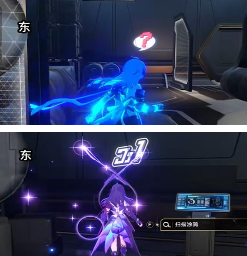5、我们在后方可以发现到?,靠近点击调查之后,就可以看见第二个涂鸦了,扫描涂鸦即可。