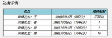 4、荣耀礼包:打开后可获得以下物品:皮肤碎片*1、铭文碎片*60;