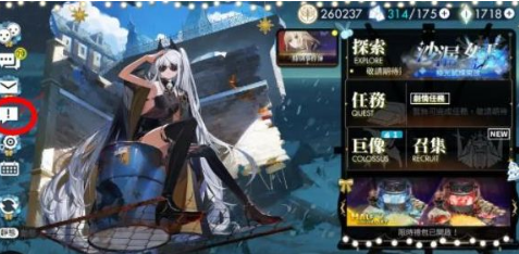 1、首先是先进入游戏中,然后是点击左边红圈中的感叹号图标。