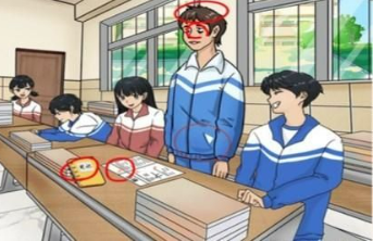 3.学习场景:上划班主任胸前的口袋,触发兜里的字条。