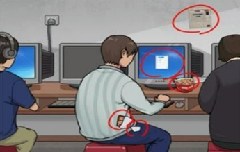 2.网吧场景:先点击兜里的存折后才能点击墙上的报纸和桌上的泡面。