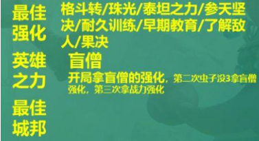 利用盲僧强化会让虫子三星很简单,很适合新手,但前期也要学会控制五连败,核心在于虫子三星配救赎和叠层数,灵活用泰坦和大天使,寒冰不要硬赌,并不重要,虫子三星后核心在于不要亏人口,使用亡眼、卡莎、枪手都可以C,根据装备和强化调整即可。