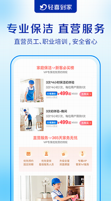 轻喜到家官网2024版下载是一款全自营更专业的生活服务平台,它基于互联网、物联网、AI人工智能的技术创新,结合中国家庭高品质、多样化的生活场景,打造中国领先的家庭生活服务平台。软件致力于为用户提供"健康、专业、安全"的服务体验,包括家庭保洁、保姆做饭、家电清洗、月子育婴等多品类,专业人员上门服务,让用户生活无忧,快来下载体验吧!