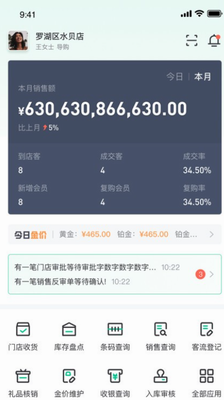 商家可通过app端操作erp等关键查询与审核,店员也可以在线对顾客会员跟进维护与营销转化