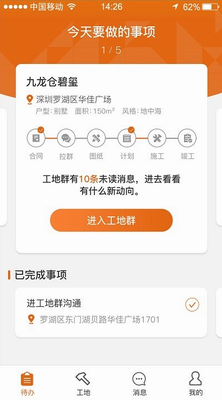 2、时刻关注最新的施工进度,让你轻松掌握进度变化;