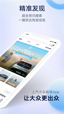 2、发现:新鲜热门的资讯内容,精彩丰富的福利活动,详尽有效的用车养车小贴士,多元有趣的圈友动态信息,随时随地阅览精选优质内容,”发现”更多上汽大众精彩世界。