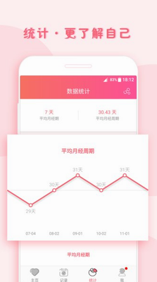 我们还将近五次生理周期用图表形式展示,提供平均值,以帮助你更好的了解自己的经期情况