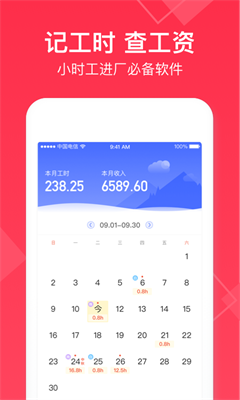 2、快速记工时,设置好小时工资后,每天记录工时,就可以自动帮您计算工时收入。