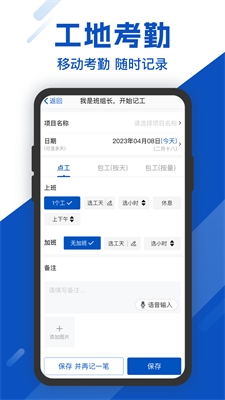 工地考勤app下载安装手机版是帮助工人记账记工的软件,操作很简单,账目非常清晰,所有的考勤都能记得清清楚楚,保障工人的工作数据安全,减少了手动记工的烦恼,是工人做工的好帮手,有需要的用户不可错过这个功能强大的工具,并且记录的内容还会随时进行备份,保存在云端,再也不怕数据丢失,摆脱传统的书本记录方式,让你的所有出勤一手掌握,年底清账再也不会糊涂,随时随地观看其他建筑工地的新鲜事,掌握各地建筑工程行业行情。