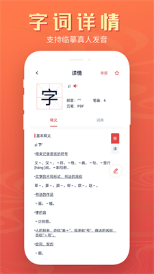3、中华字典app支持单字.词语.汉语拼音.部首.笔画等多种检索方式。