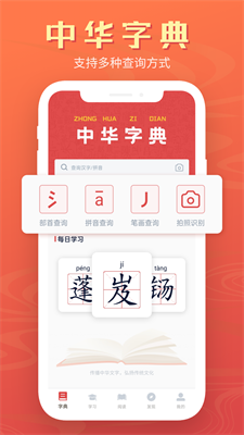 中华字典下载免费手机版app是一款在线字典工具软件,也是一款功能齐全的汉语学习软件,中华字典APP提供的释义详细,用户在学习的同时还能跟着字典发音读,学完后可以默写,该软件于新华字典和成语词典内容是一样的,拥有和纸书一样的查字查词方式,收录将近六万汉字和成语,用户可以使用拼音、词语、偏旁部首等多种方式搜索字词,提供全面、准确、实用的中文词典查询服务,支持词语发音、生词本、历史记录等实用功能,是学习中文和提高中文水平的好帮手。