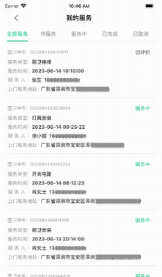 【4】APP会提供详细的服务地址,以便各个师傅进行上门服务;