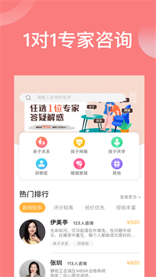 1、丰富的咨询服务中心,该页面中同时提供孩子厌学.孩子网瘾以及亲子关系等咨询服务专区。
