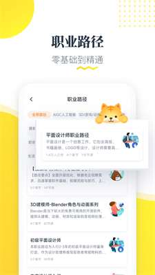 4、涵盖设计插画.办公编程.新媒体运营等80+职业路径,系统化学习课程,助力零基础小白掌握职业技能。