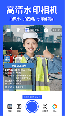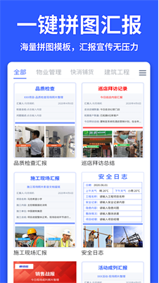 1、一键拼图,大量水印照片轻松汇总,汇报无忧,还可以一键生成视频工作汇报,更好的展示工作内容。
