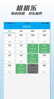 每个技师的工作状态都能轻松查看,服务中、空闲状态轻松掌握;