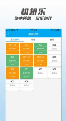 能够实时的知晓每个房间的情况,空闲、服务中都能一目了然;
