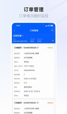 2.对店铺里面的所有销售订单以及不同的套餐销售情况都可以直接进行查询。