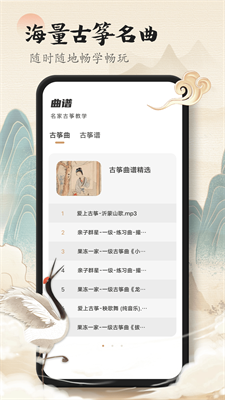 2、丰富的曲库内容,多种演奏模式,高品质伴奏与节拍提示,为习筝者带来更丰富的视觉和听觉体验。