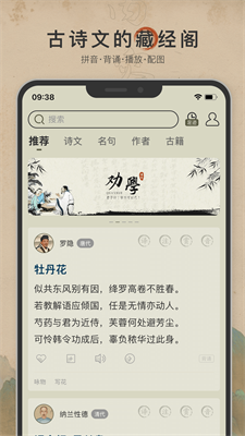 1、作者:对古诗文作者进行了整理和罗列,供用户学习认识。
