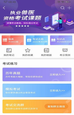 5、平台孩子准备了许多的执业兽医考试题库,让用户在线学习;