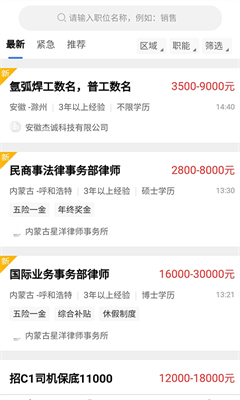 2、支持按照不同的参数进行筛选岗位信息,可以从区域.职能.薪资等方面。