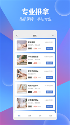 4、软件中拥有着超多的功能,可以对**傅在线进行预约,足不出户就可以享受到按摩服务。