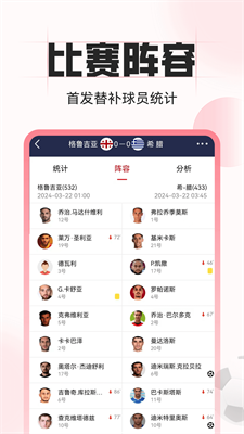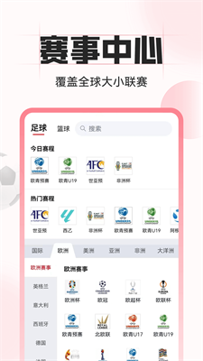 2、足球赛事全搜罗,赛前分析.图文直播.赛况数据.阵容评分.比赛集锦,帮助你了解比赛的方方面面。