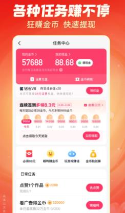 2.每天签到、看短视频、完成各种各样的任务能赚金币。