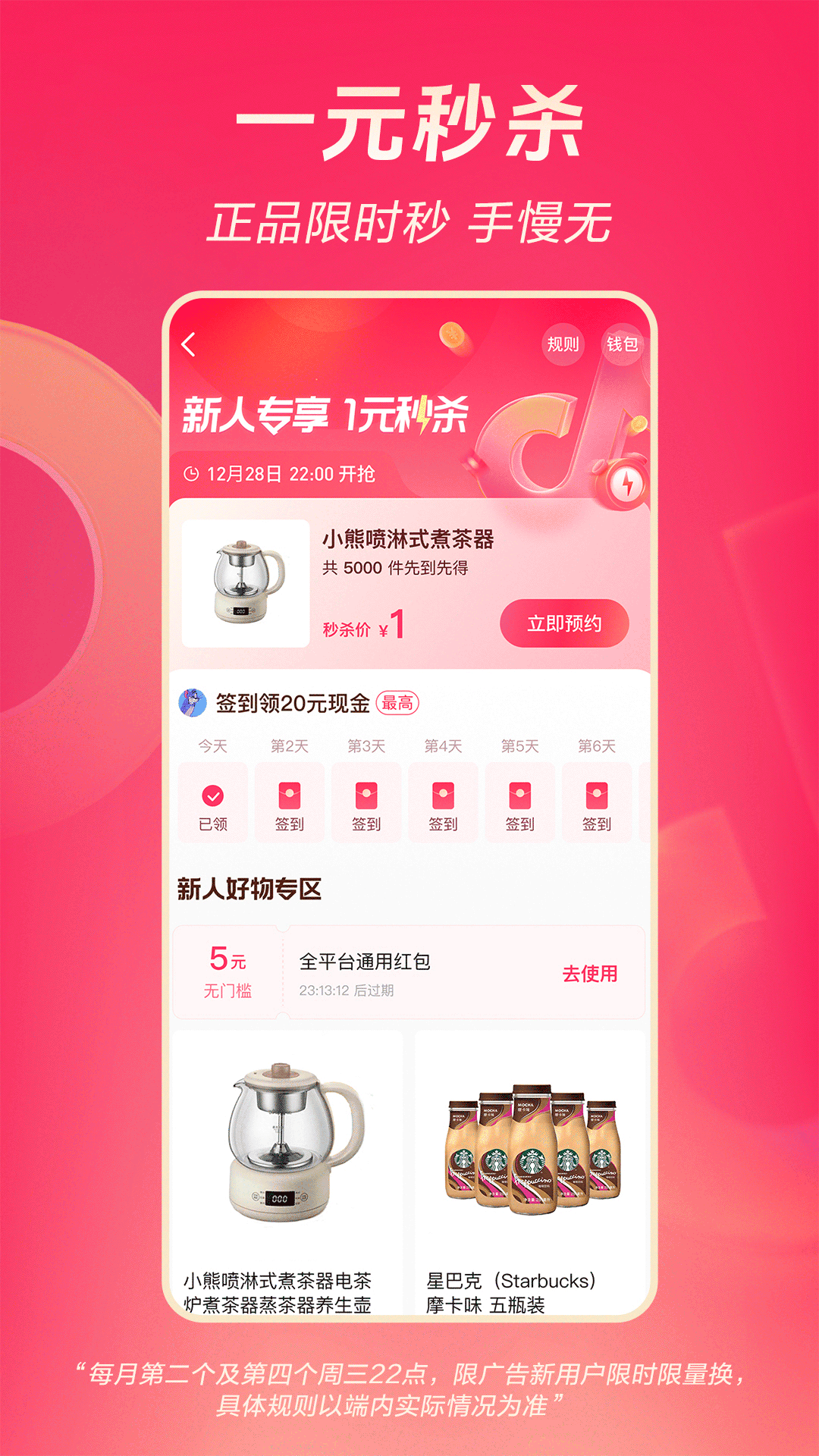 4、枓抖音极速版APP的来赚钱功能是新用户登录就会有的专属红包,如果新用户+新设备还会有奖励。